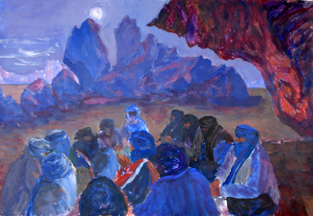 Tuaregs people singing in a cave in Sefar, acrylic, 70 x 100 cm
