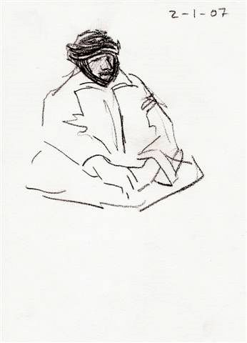 Tuareges people getting ready to eat, pencil, 15 x 20 cm