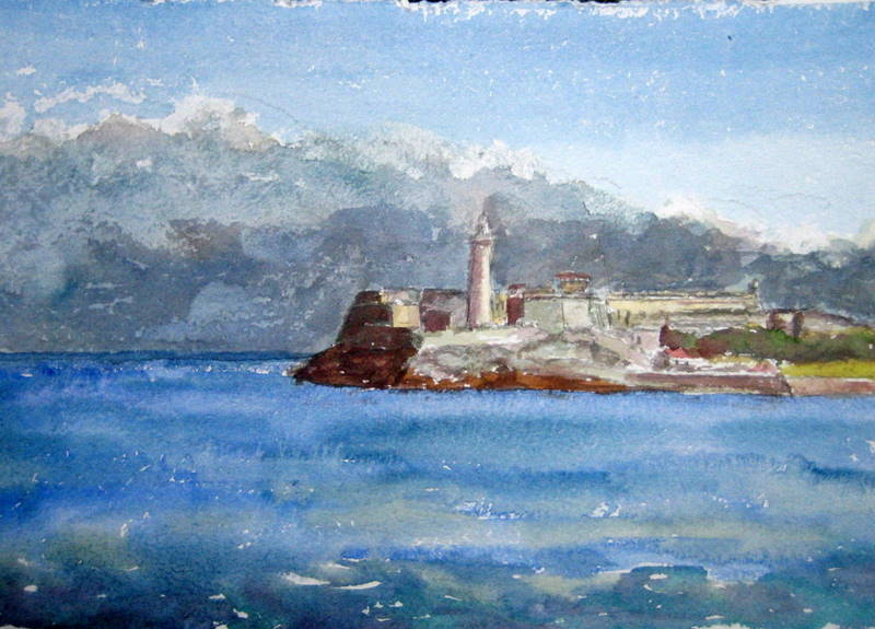 Vies of the Fort of San Carlos from the Malecón, watercolor, 24 x 35 cm |