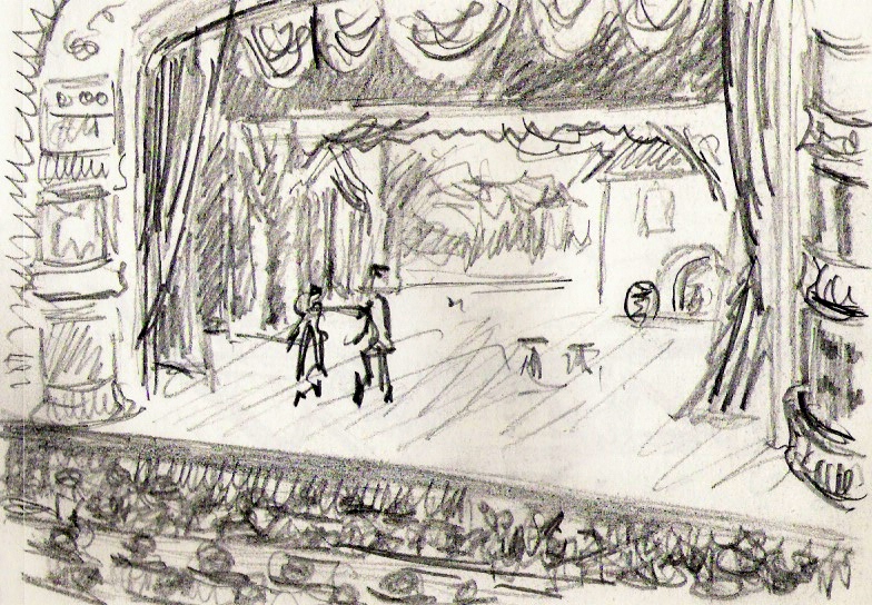 Gran Theater (Gallegos's House), pencil, 15 x 21 cm |