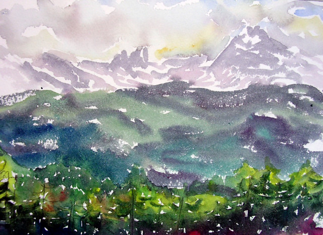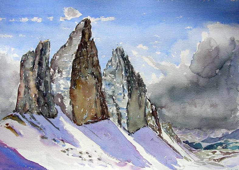 The three peaks of Lavaredo, watercolor, 36 x 51 cm