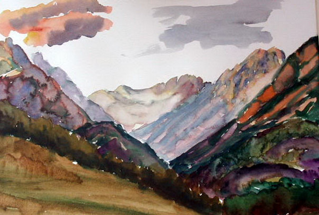 Las Maladetas desde el Posets, acuarela 23 x 31 cm, 2000