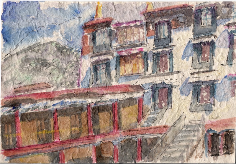 Drepung Monastery, acuarela 21x30 s/papel de arroz nepali, 2006