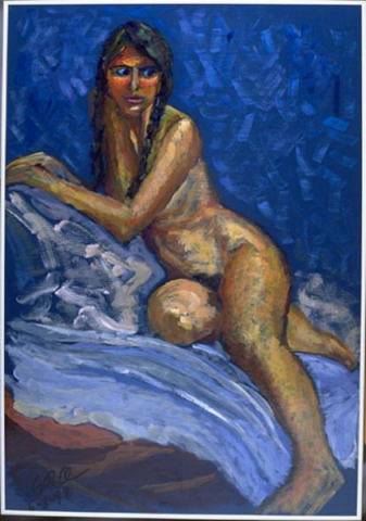 Desnudo en azul, acrílico 100 x70 cm