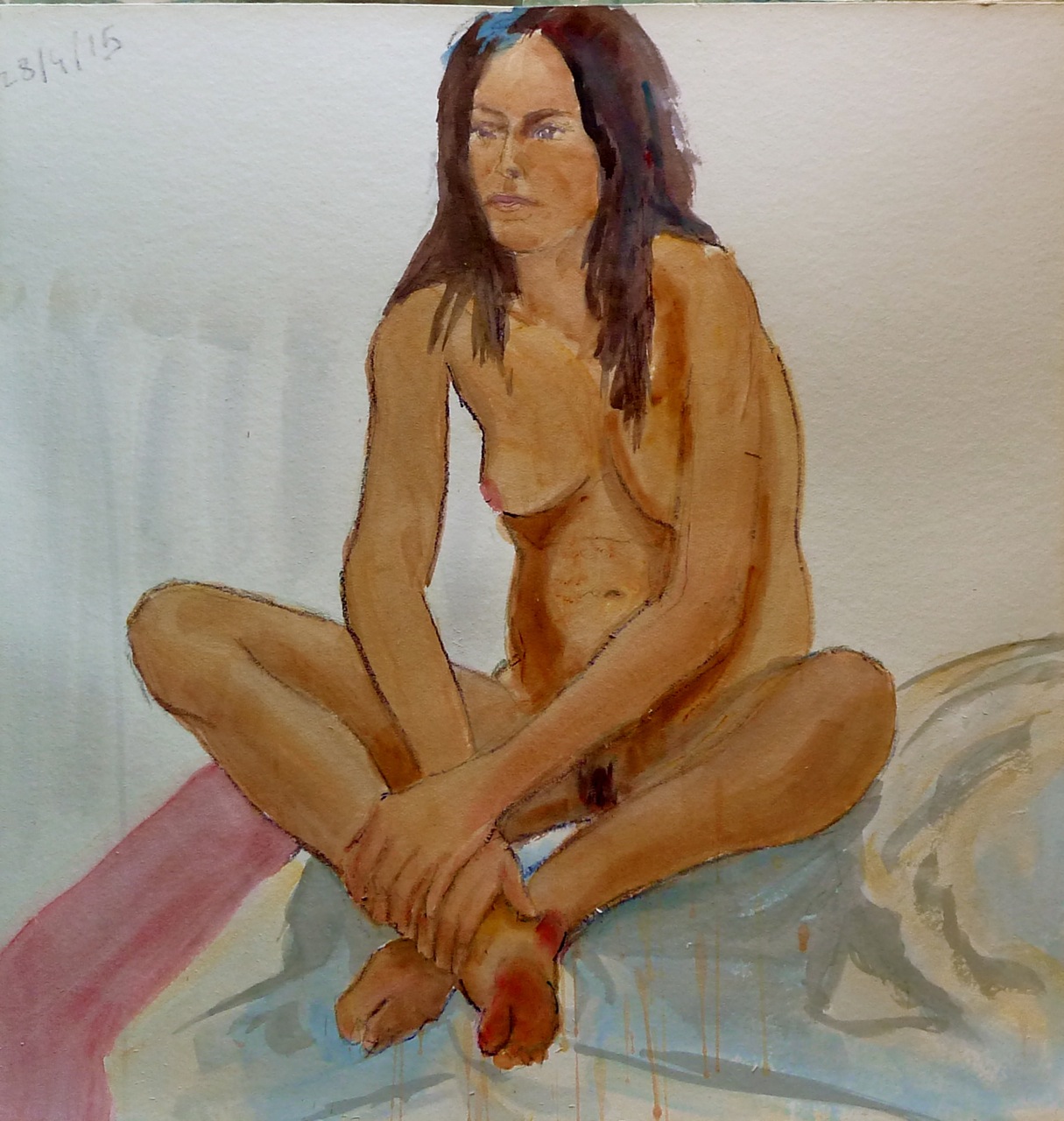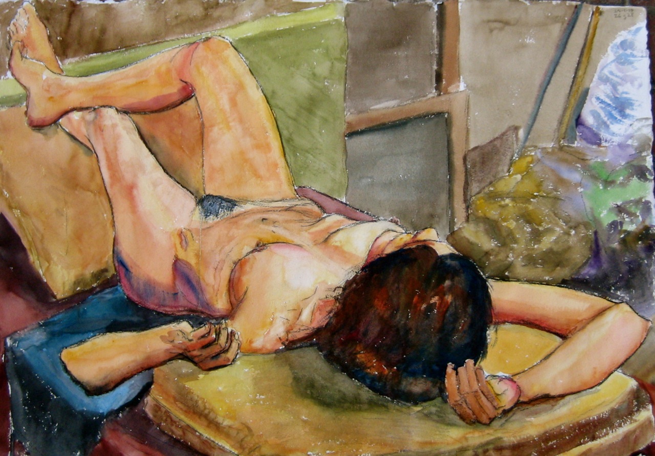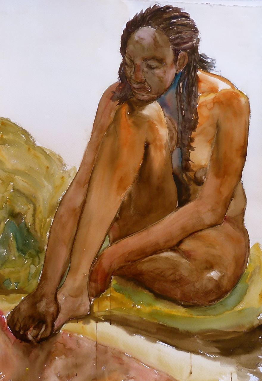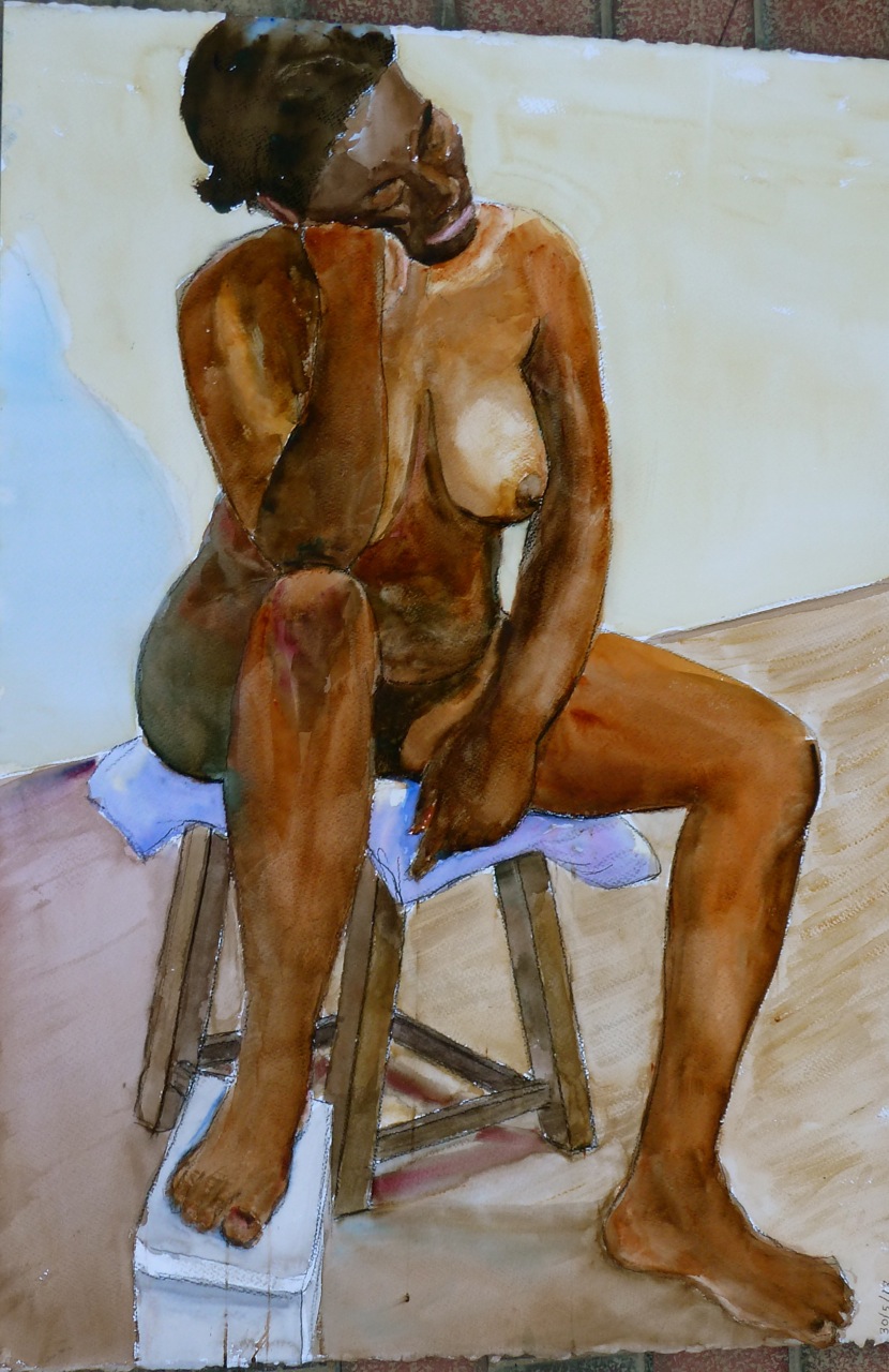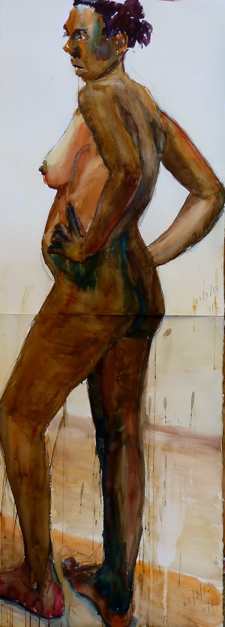 Figura a la acuarela dispuesta en diagonal sobre papel Guarro 100x70 cm (18/3/2013)