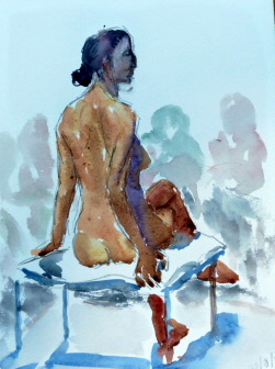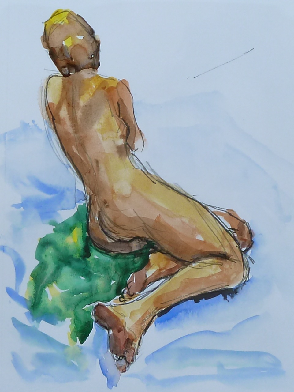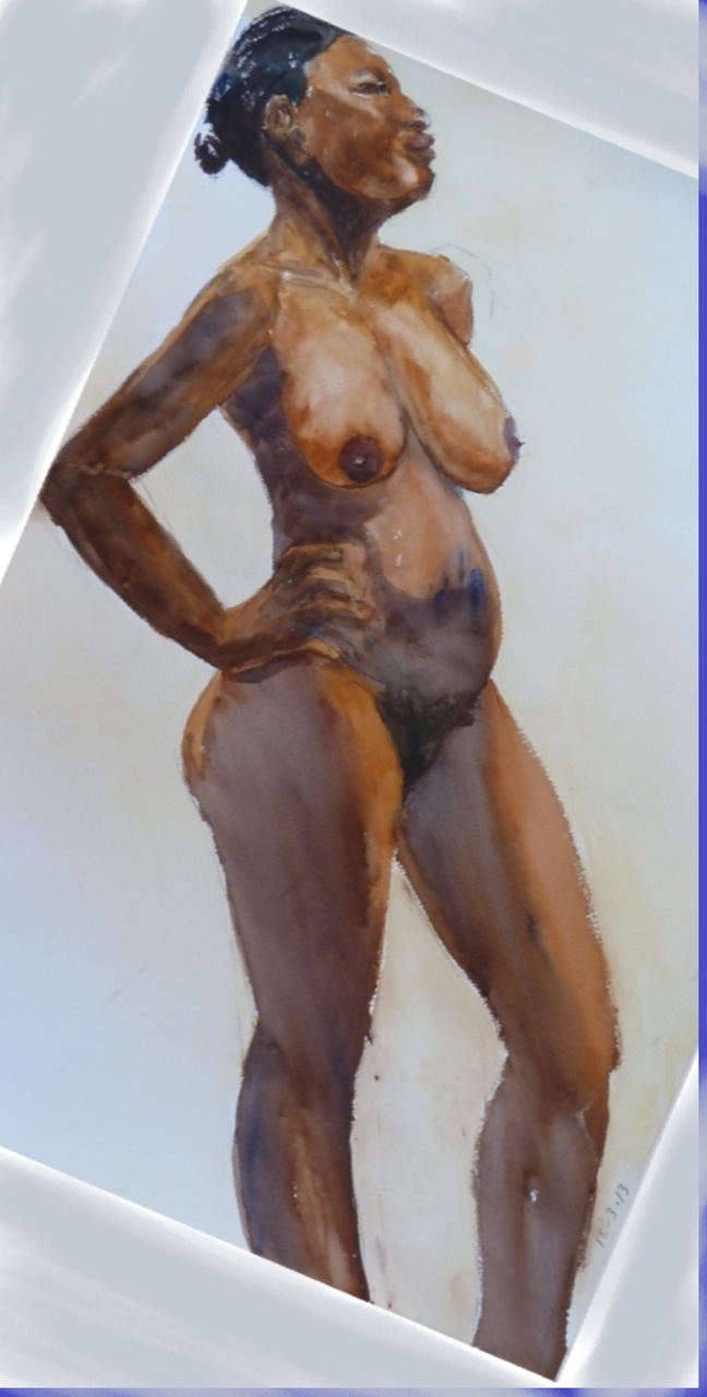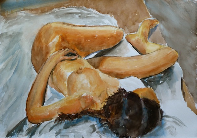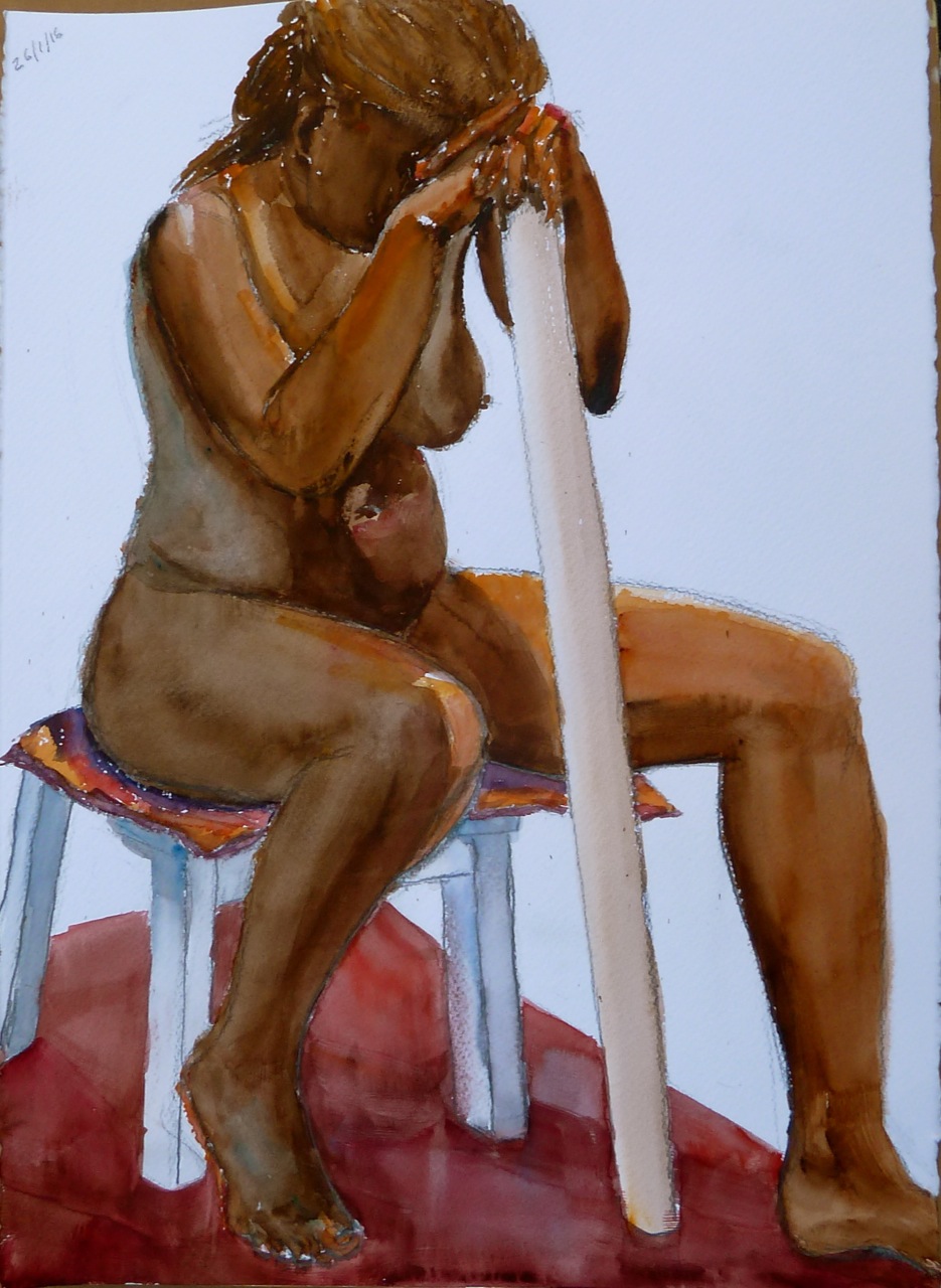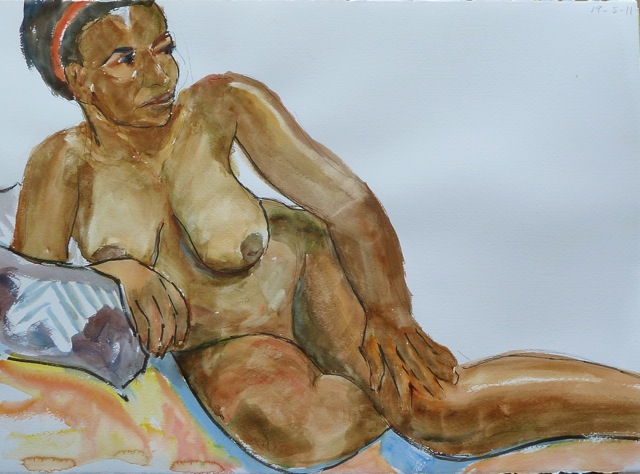 Figura a la acuarela dispuesta en diagonal sobre papel Guarro 100x70 cm (18/3/2013)