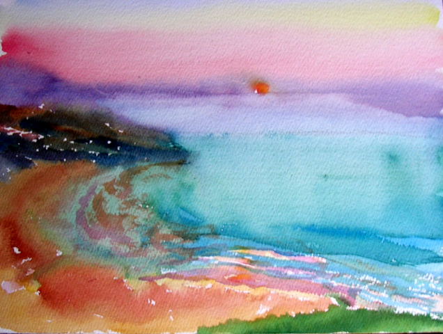 Puesta de sol en Cantabria, acuarela 23x31 cm, 2005