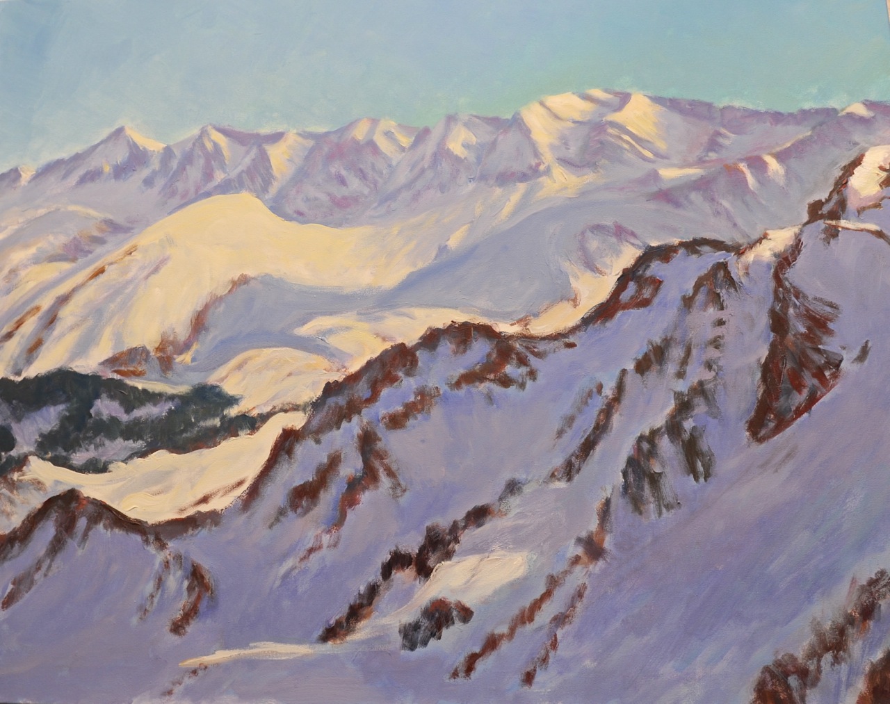 Bajando de Brazato con esquís, acrílico y óleo, 58x95 cm, 2010