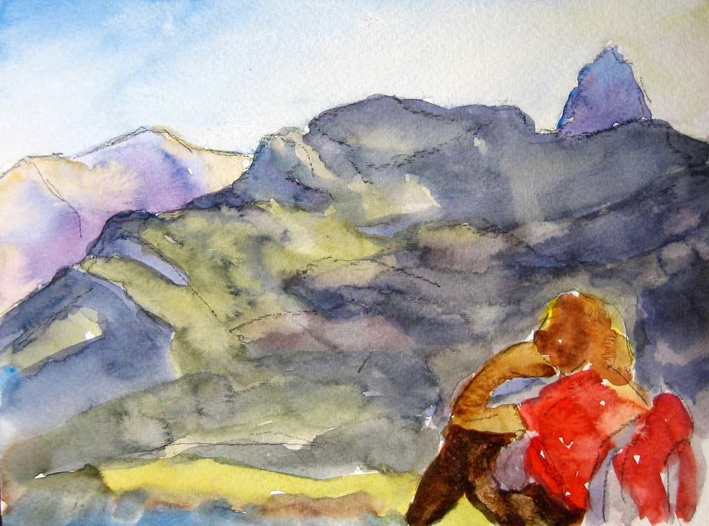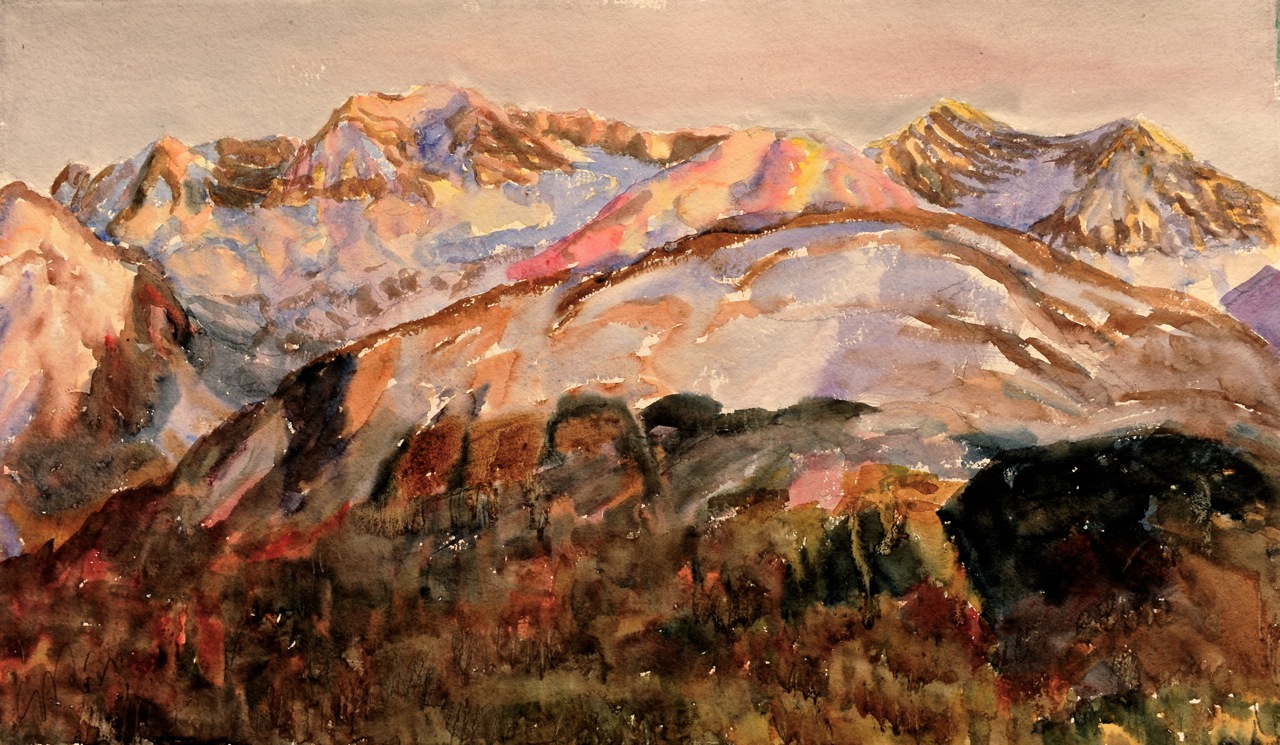 Contraluz en la cresta de Sasnos, acuarela 23 x 31 cm, 2004