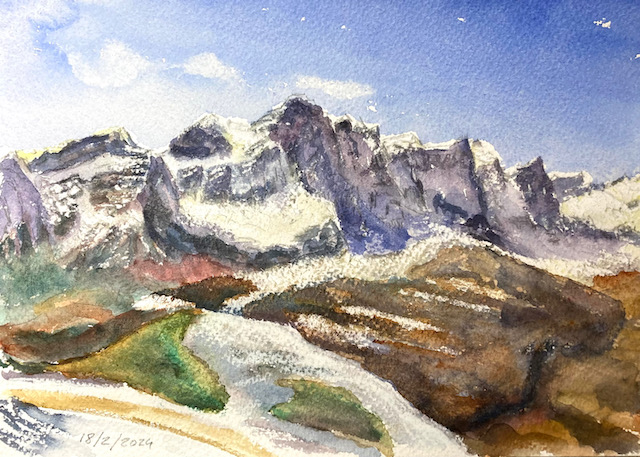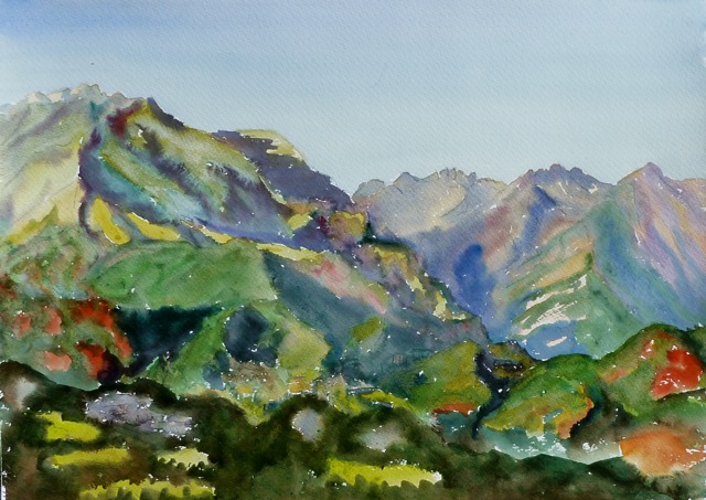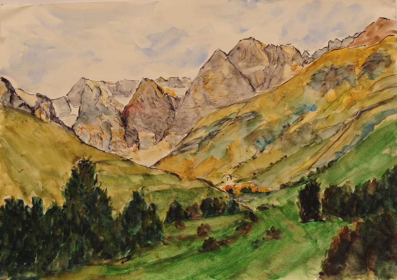 Tendeñera desde las pistas de Panticosa, acuarela s Meirat 28x36 cm