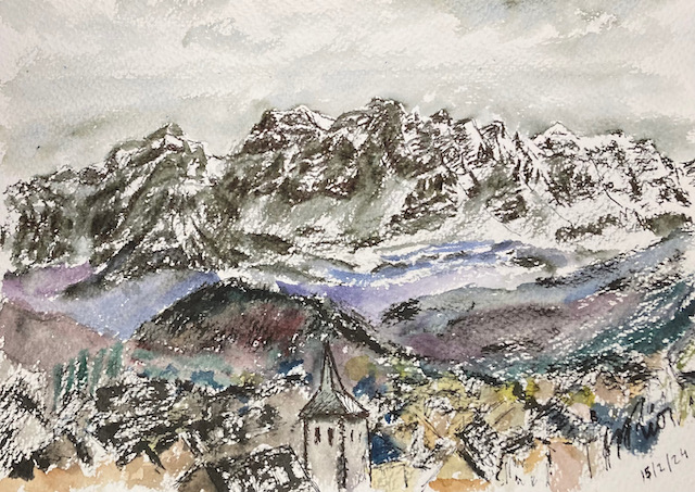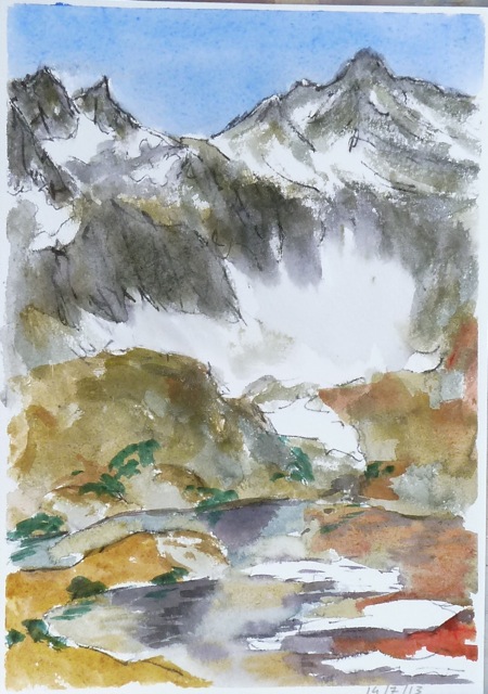 Desde el Portalet (lado francés), acuarela y tinta, 21x31 cm, 2013 |