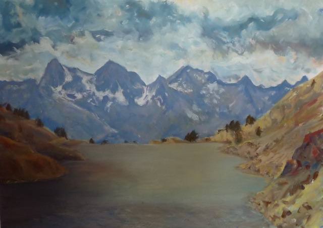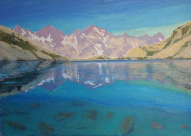 Ibón de Brazato en calma (acrílico sobre DM 61x85 cm, 2014)