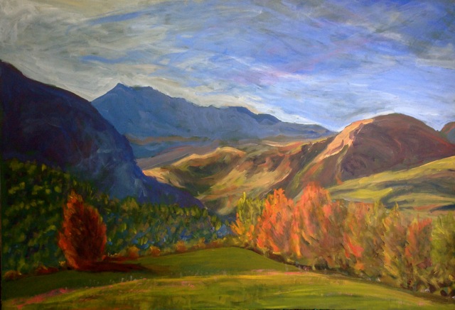 Paisaje otoñal en el valle de Tena (acrílico sobre carpeline 70x100 cm, 2014)