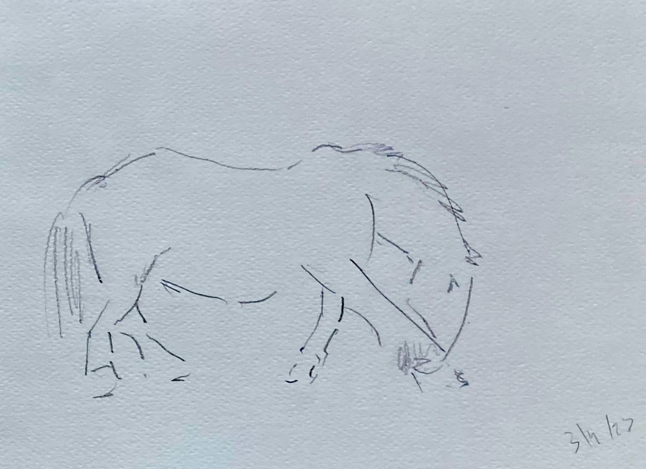Yegua pastando en la ribera del Gállego, lapiz sobre cuaderno, 2023 |
