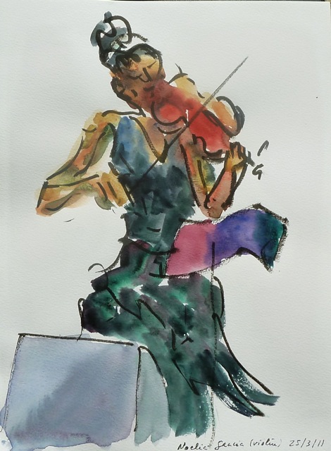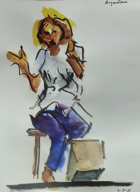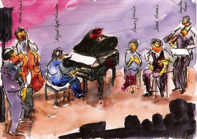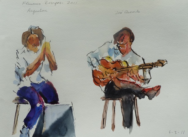 Argentina y José Quevedo en "Flamenco Zaragoza 2011", acuarela 24x32 cm