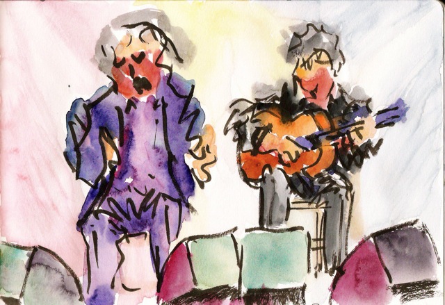 Pansequito al cante & Manuel Parrilla (guitarra), acuarela y tinta 21x30 cm, 2011