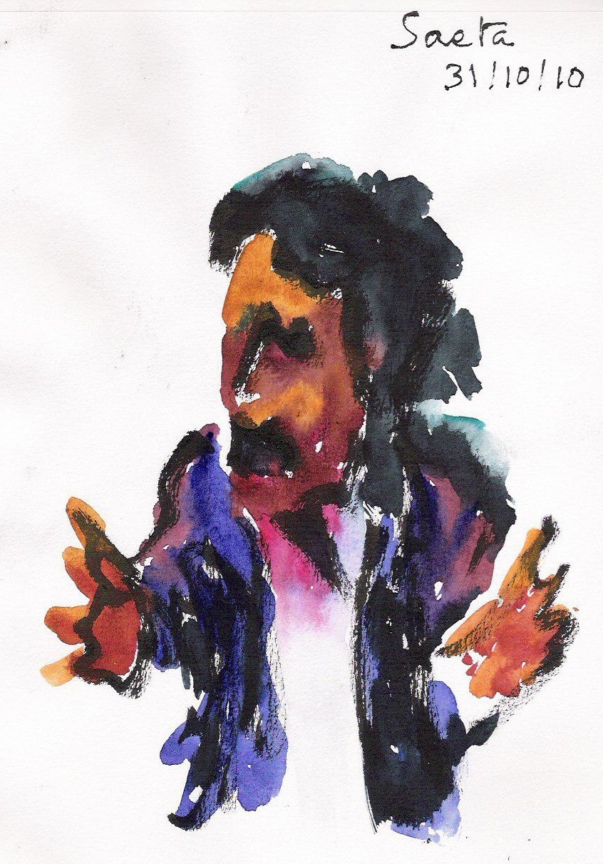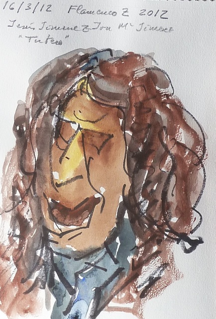 Juan Pinilla al cante, en el “Flamenco Zaragoza 2008”, tinta y acuarela, 15 x 21 cm