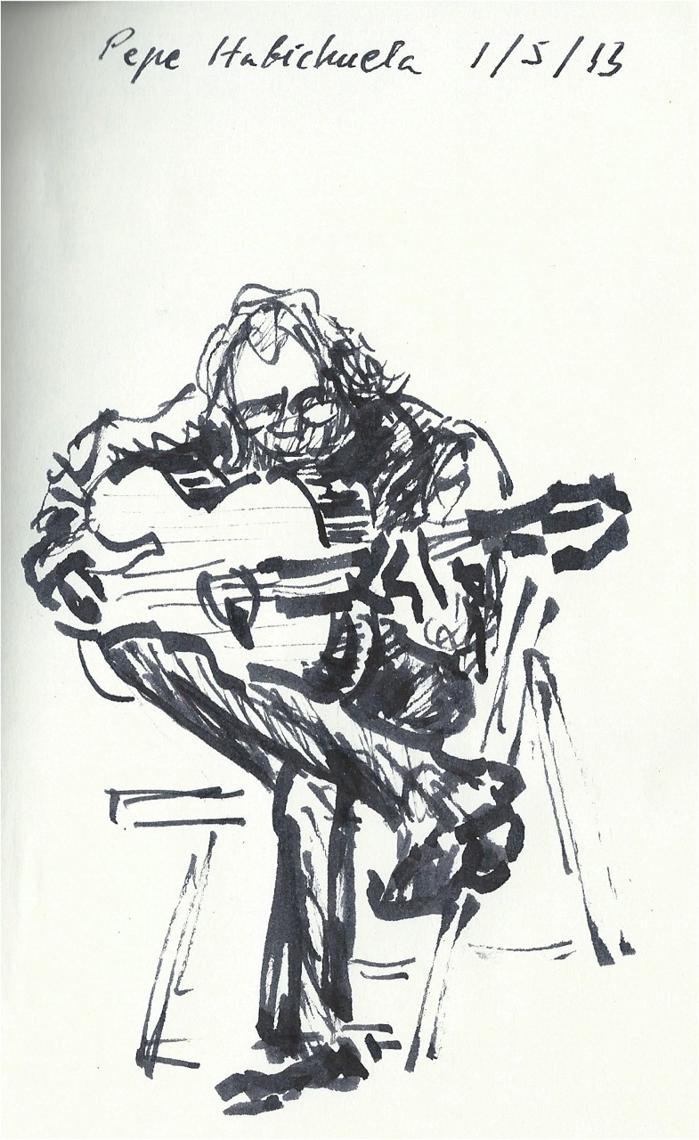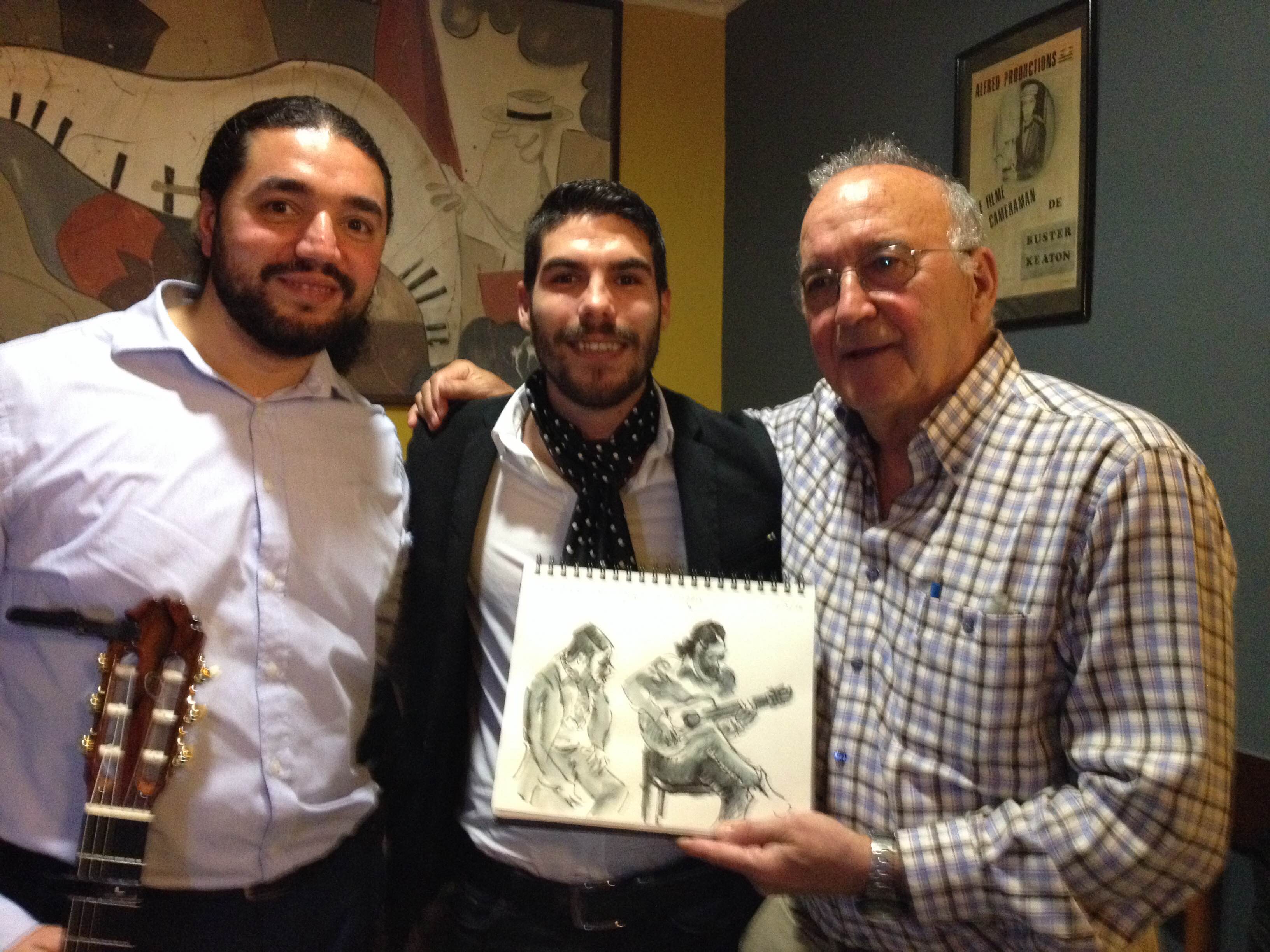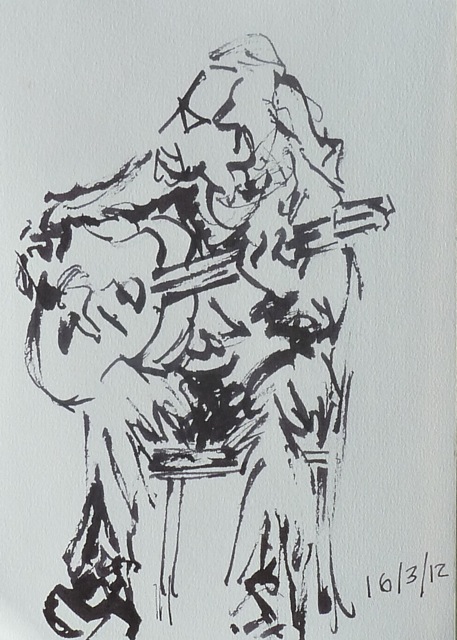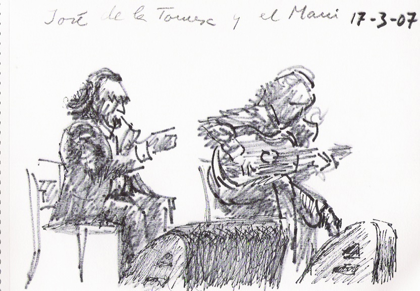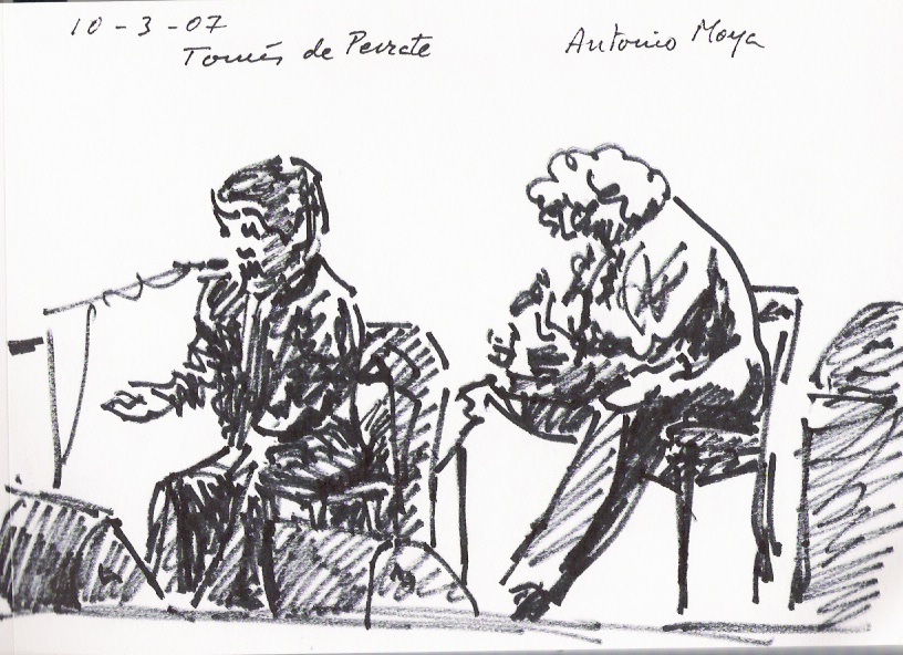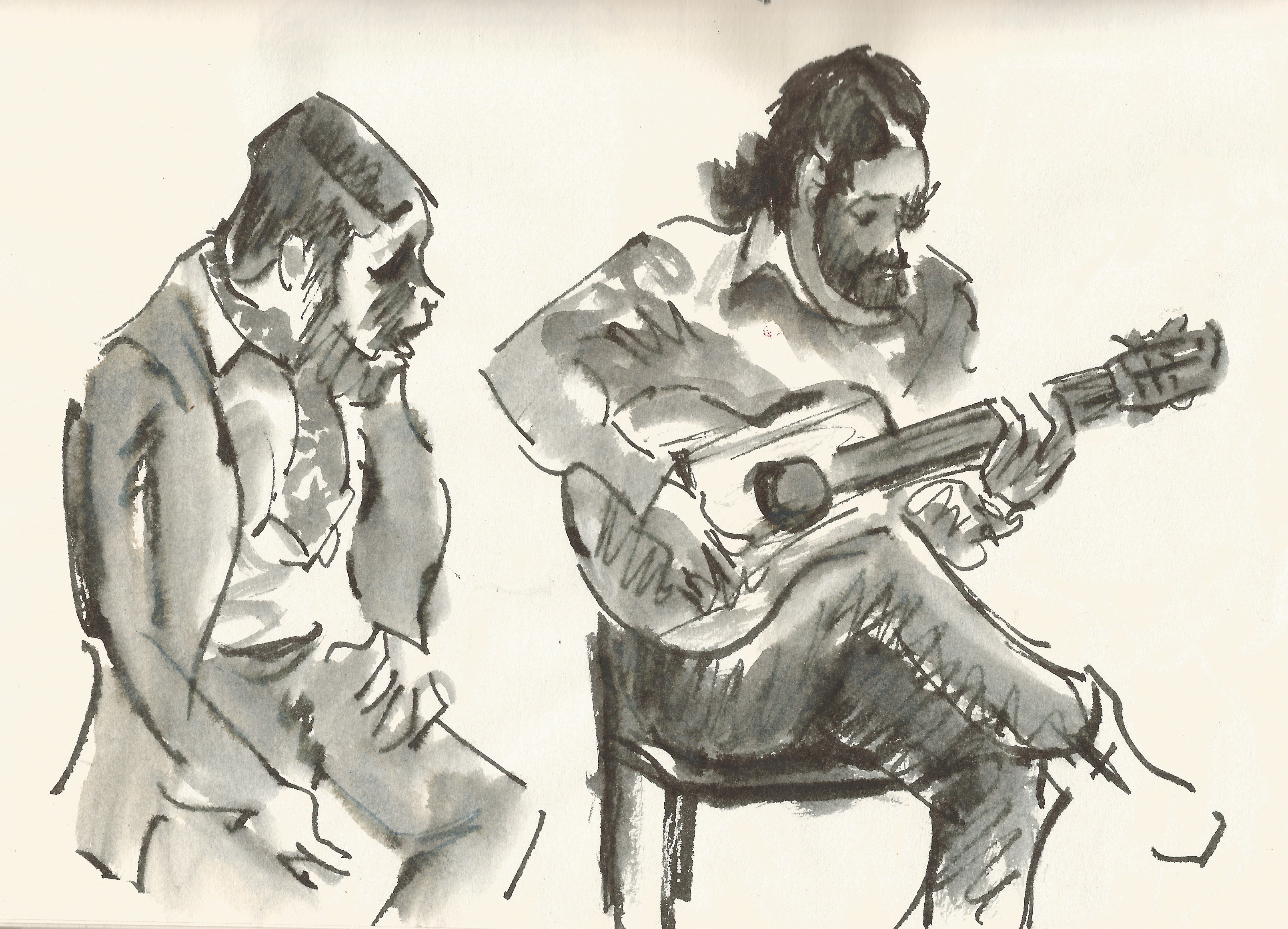 Tomás de Perrate al cante y Antonio Moya al toque, tinta, 15 x 21 cm, Zaragoza 2007