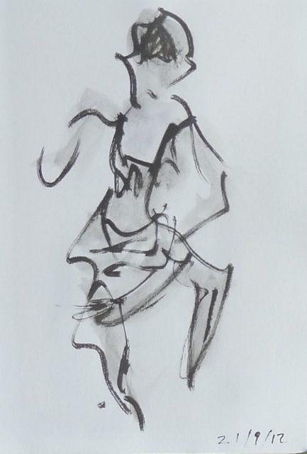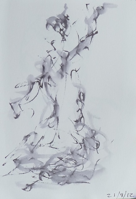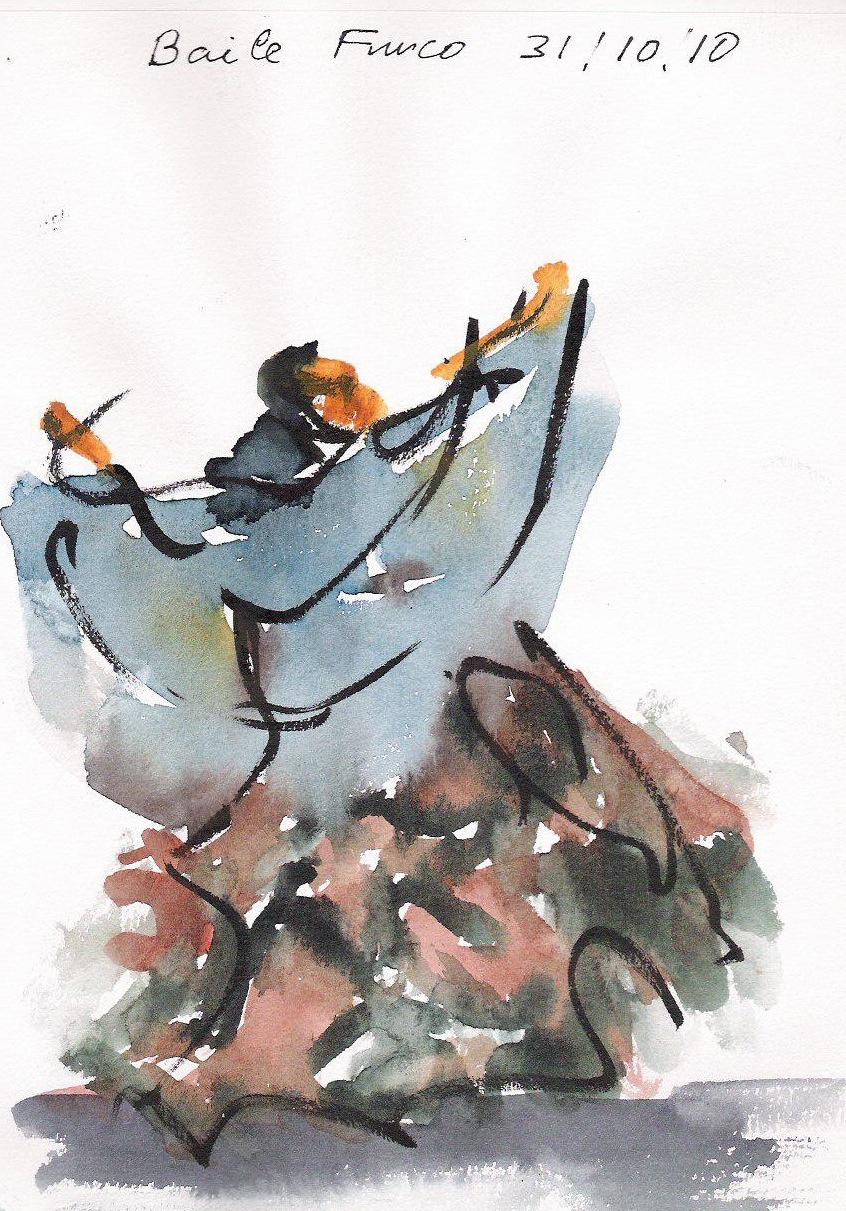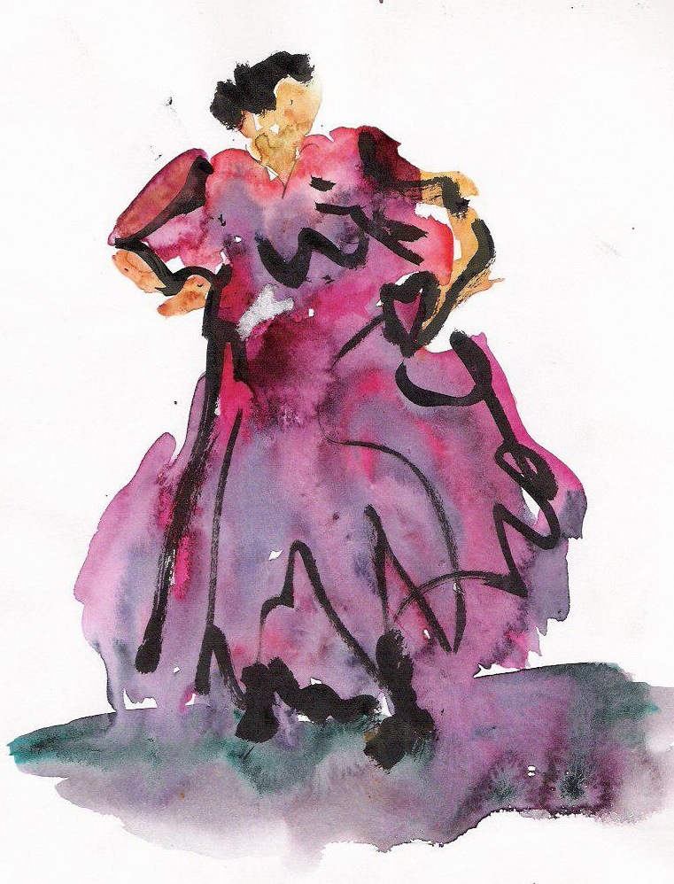 Bailaora del Ballet Flamenco de Andalucía de Cristina Hoyos, tinta y acuarela, 21x15 cm |