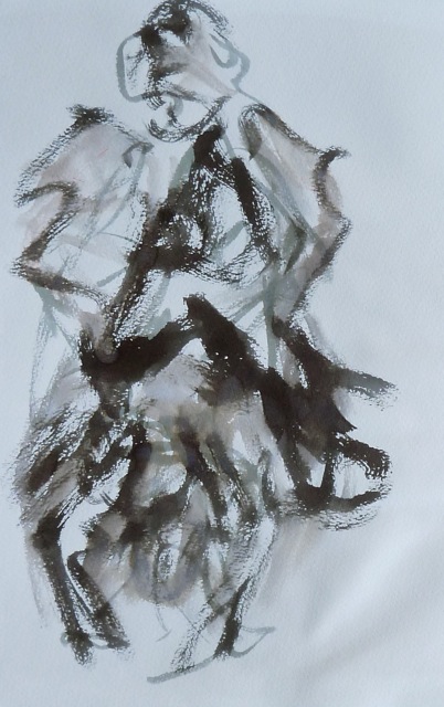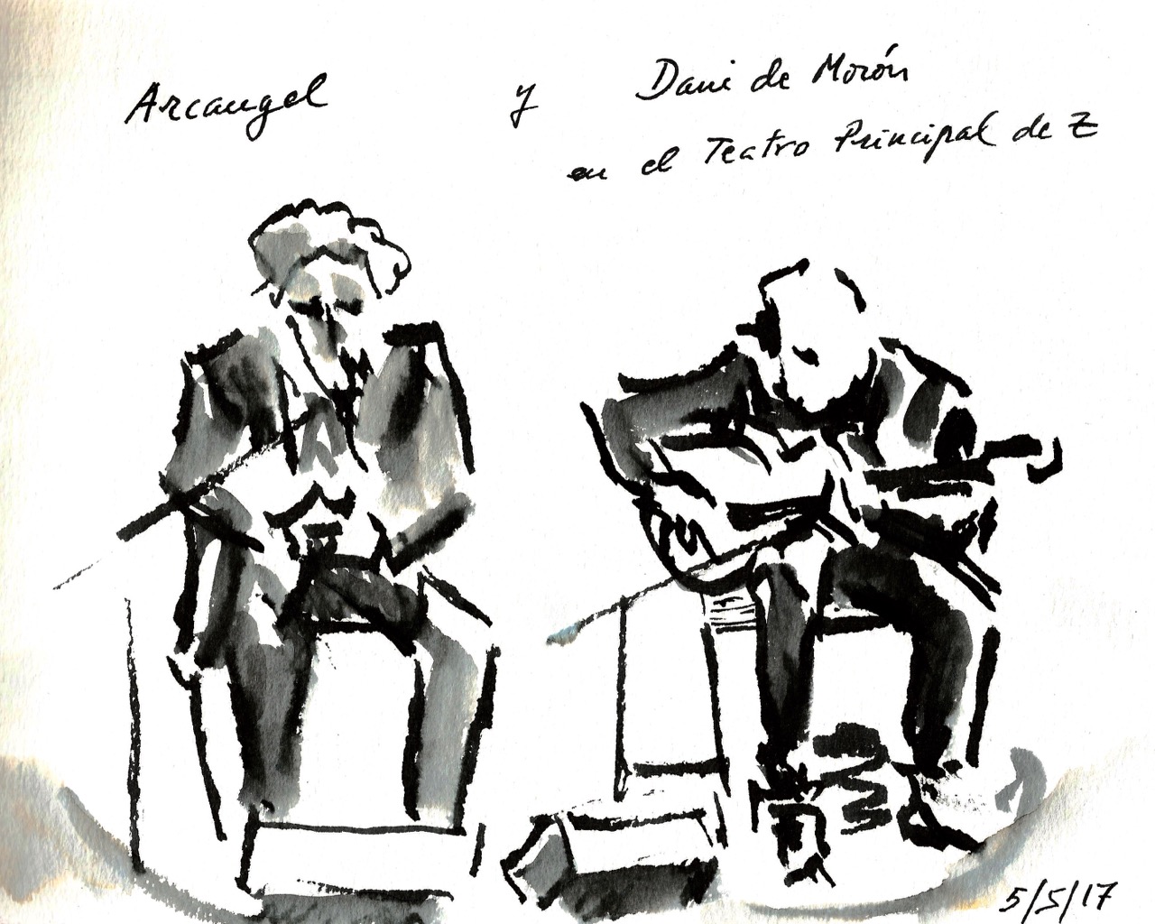 Arcangel y Dani de Morón, abril 2017, (tinta aguada sobre cuaderno Canson A4 300 g)