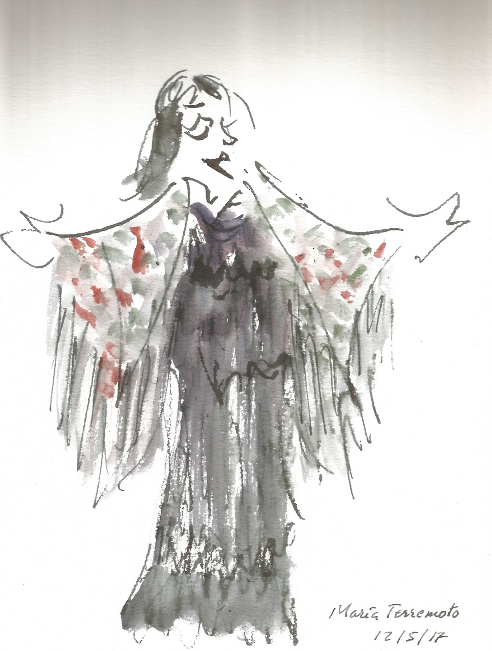 Cristina Hoyos en su Ballet Flamenco de Andalucía, tinta y acuarela, 21x15 cm