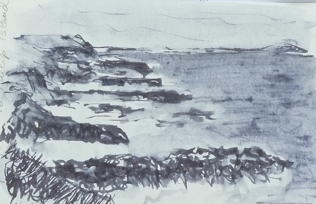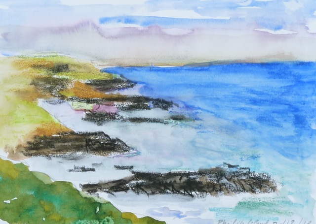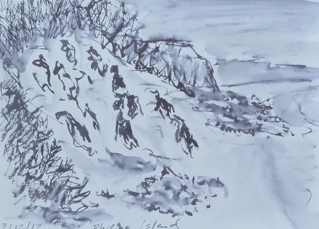 Acantilado en Philip Island (tinta aguada s cuaderno A5)