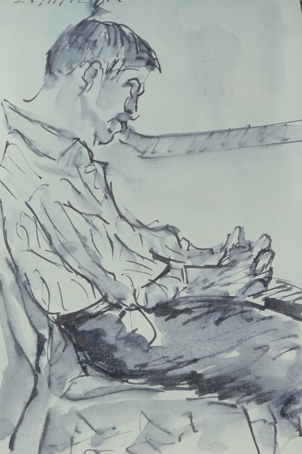 Viajero oriental en el Metro de Melbourne (tinta s cuaderno Moleskine A5) |