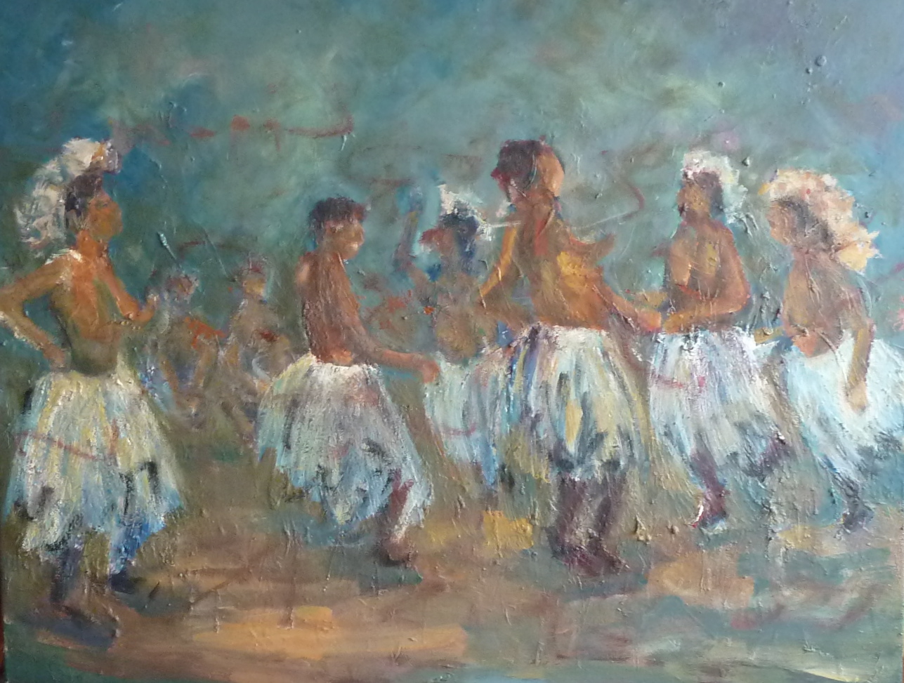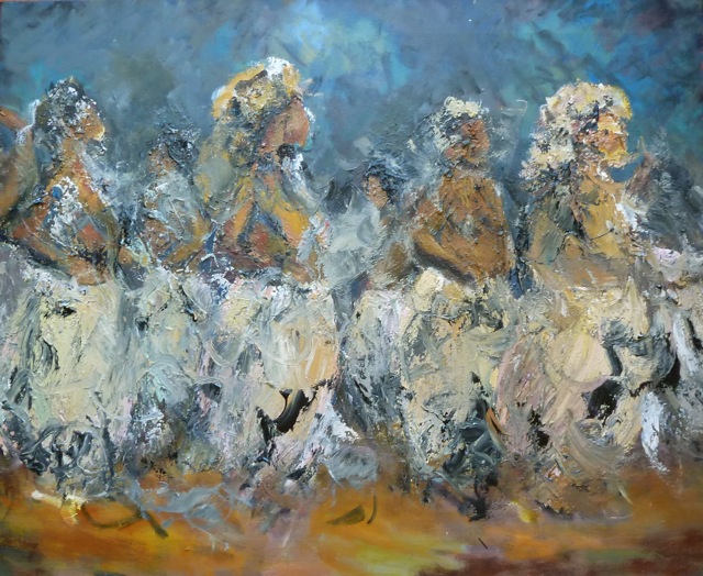 Danza de Pigmeos II, acrílico 70x100 cm, 2014
