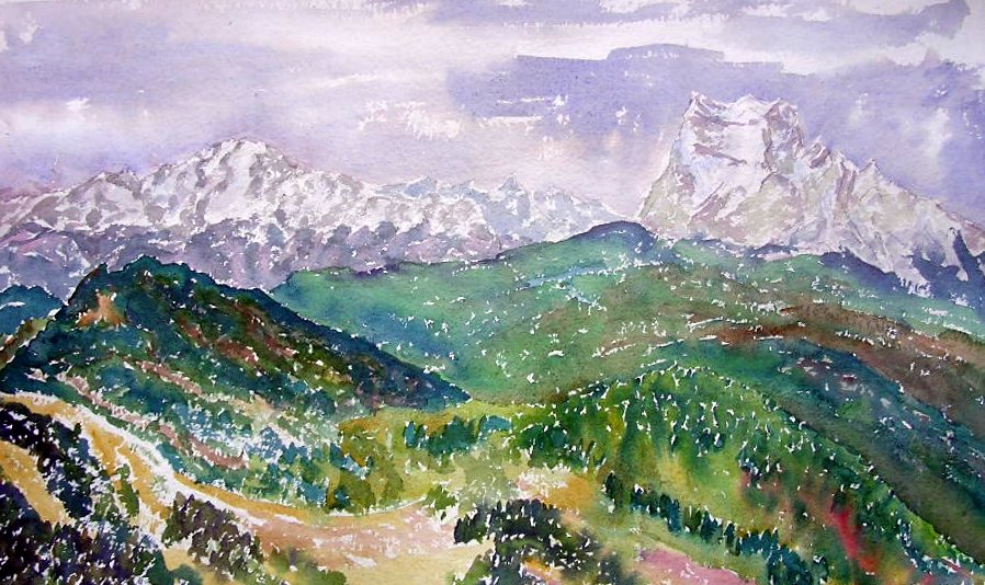 Civetta y Pelmo, acuarela 50 x 82 cm
