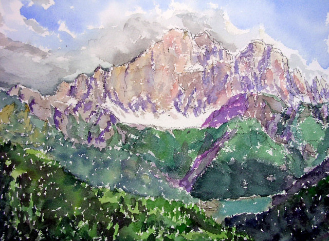 Tres Cimas de Lavaredo, acuarela 36 x 51 cm