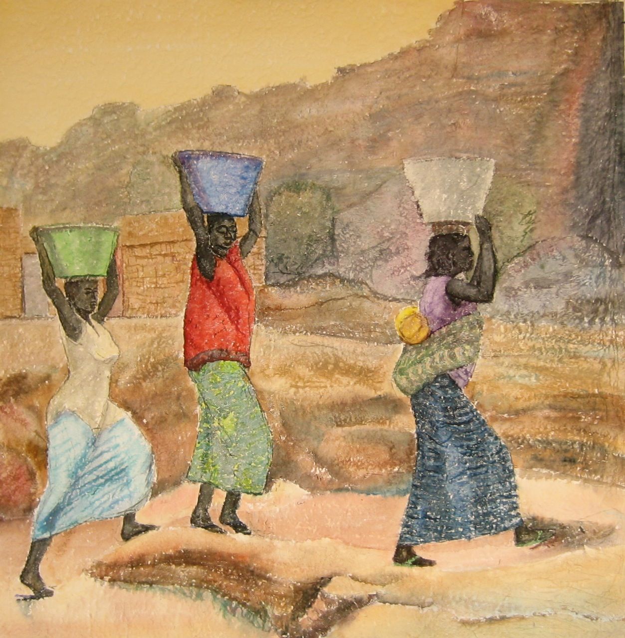 Cada Mañana Temprano LLevan Agua, acuarela 100x100 cm