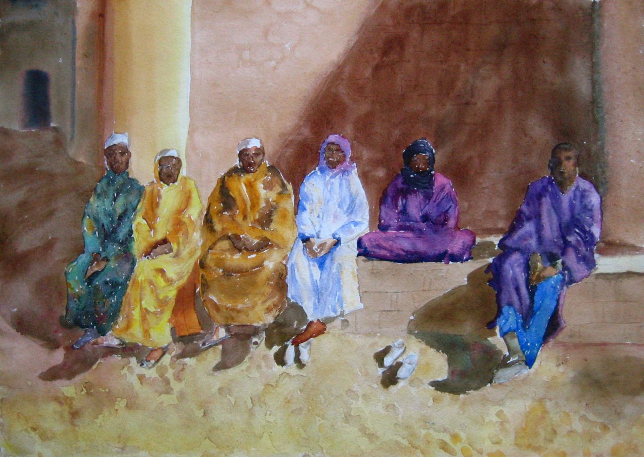 Árabes en Timbuktu, acuarela 50x70 cm, 2008 |