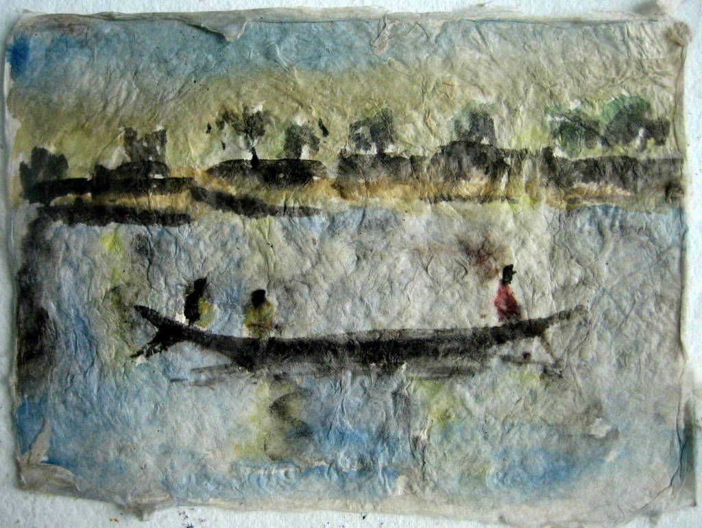 Pinaza sobre el Bani, acuarela sobre papel de arroz 15x20 cm