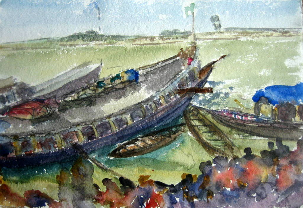 Puerto de Mopti, acuarela 24x35 cm