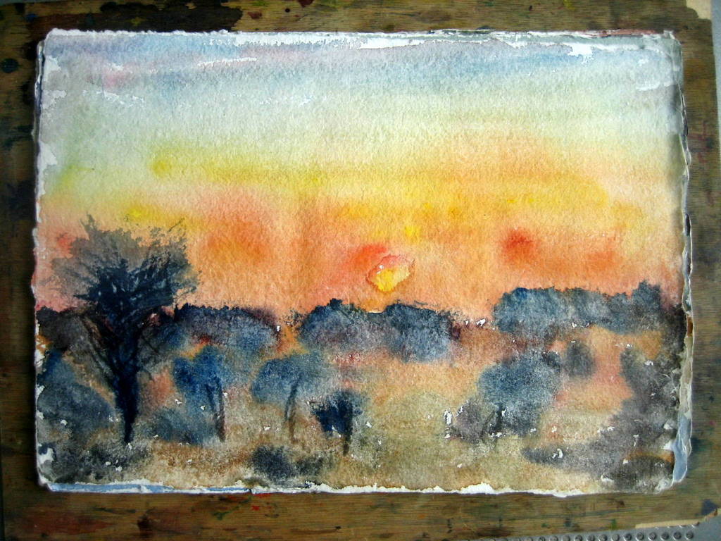 Puesta de sol en Timbuktu, acuarela 35x25 cm |