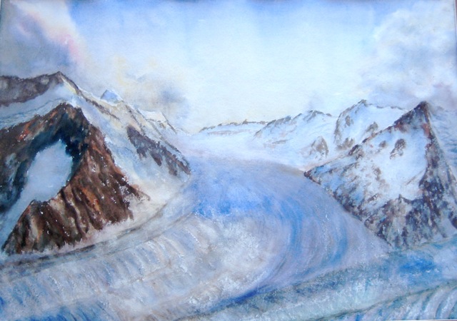 Desde el Finsteraarhornhütte El Gross, acuarela 13,5x18 cm