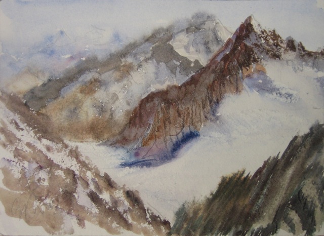 Desde el Finsterarthornhütten (3048 m), acuarela 26x36 cm