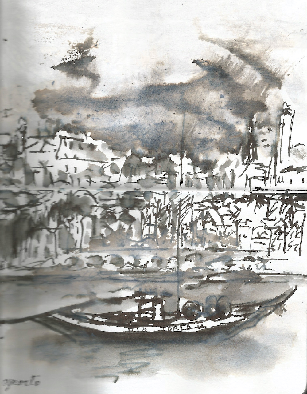 Barcaza en Oporto sobre cuaderno 9x14 cm (8 de agosto de 2021)