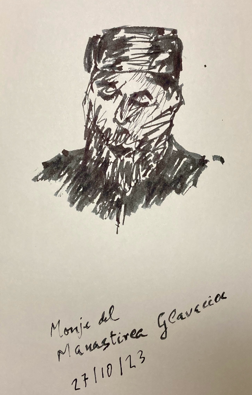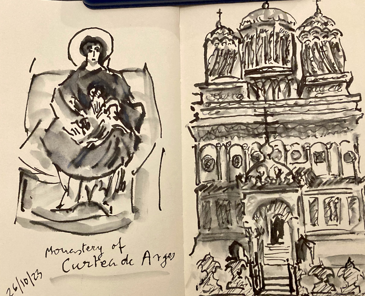 Monasterio de Curtea de Arges dibujos a tinta aguada |